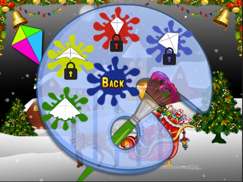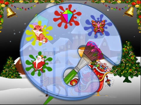 - You can color santa, kite, butterfly, and cat