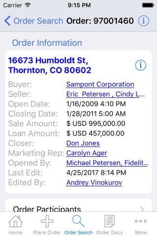 - View detailed information about buyer and seller (Name, Title, Company, Phone number, Address);