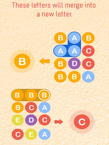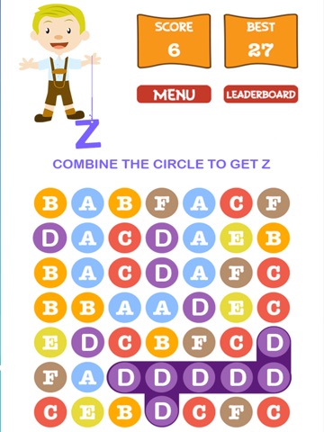 Click the circle with same letter, and they will pop up. Click again to merge them together. Enjoy it and try to get Z