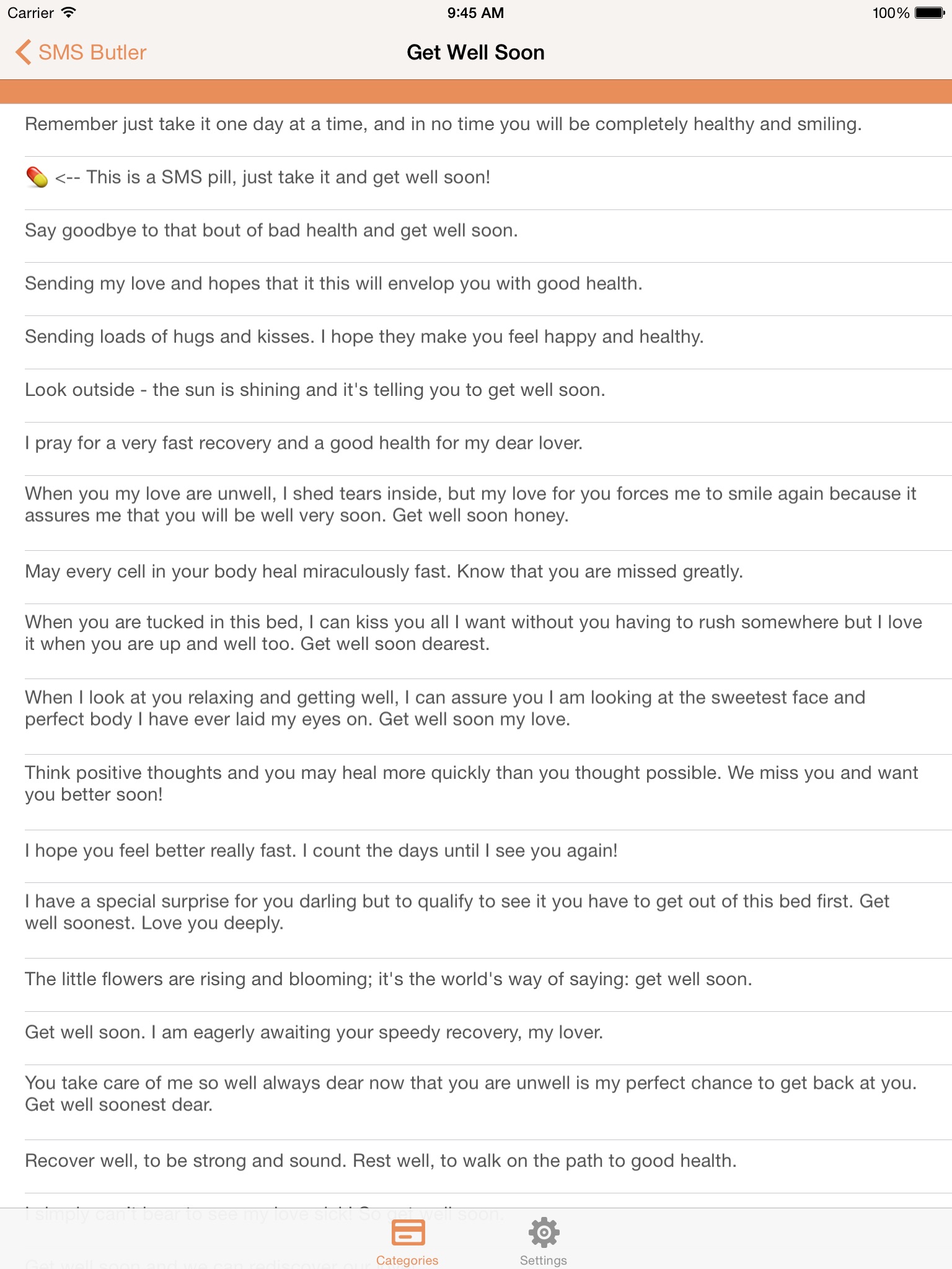 Always the best SMS quotes at your fingertips. Simply select a category and choose your quote. Open it directly with SMS / iMessage, Email, Whats App or copy it into the clipboard.