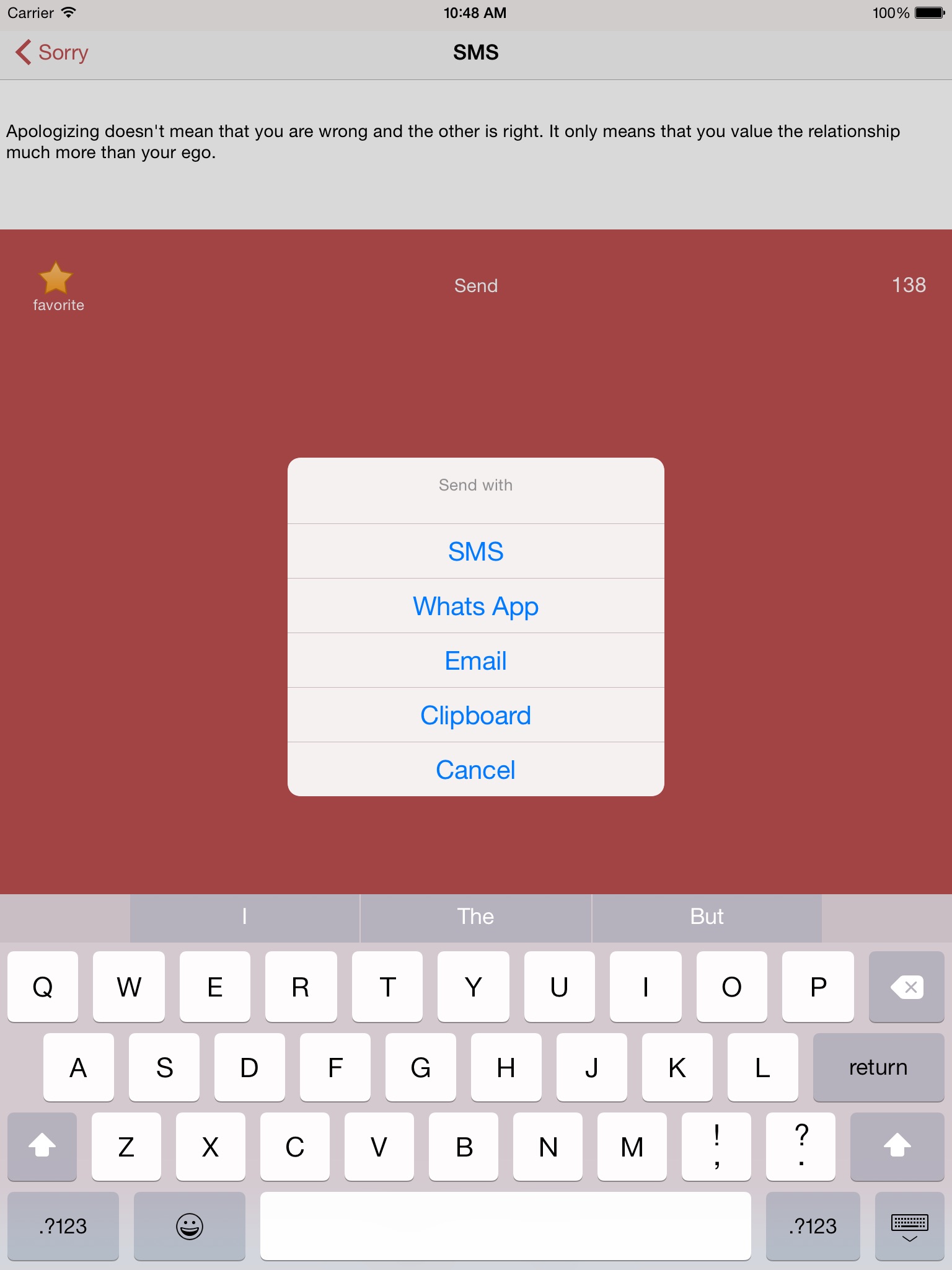 Always the best SMS quotes at your fingertips. Simply select a category and choose your quote. Open it directly with SMS / iMessage, Email, Whats App or copy it into the clipboard.