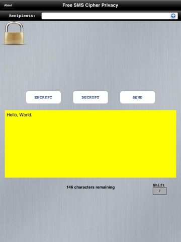An easy-to-use privacy utility that scrambles and de-scrambles your English SMS text messages with the Caesar Cipher. Compatible with older devices, as well as newer devices.