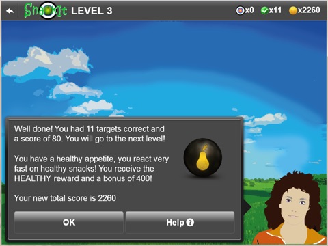Shoot targets out of the sky and develop a taste for healthy snacks! Shoot blue targets as fast as you can to collect points and rewards and reach the next level. But look out not to shoot the grey targets. So, pay attention and be accurate! Experience how the game becomes more challenging as you go from level to level. A nice addition, while you are playing, you become more attentive to healthy snacks and less attentive to unhealthy snacks.