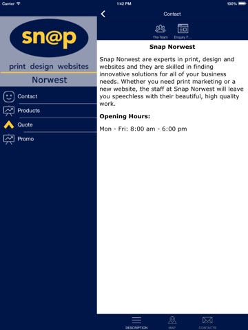 Connect with your local snap centre from the palm of your hand. Get a quote, browse products, view special offers, receive updates about in-store events and more. Snap Norwest app makes it easy to keep up to date with your online and offline marketing needs from wherever you are.