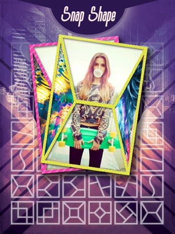 Snap Shape has 60+ layouts to help you create unique and beautiful framed compositions. Select a frame layout, arrange your photos into the frames, pinch to zoom and swipe to get the perfect composition, apply beautiful effects to each individual photo, and change the size of the frame for the perfect look. Besides, you can add artist captions on your works!