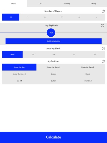 • Simply input your chips, raise size and ranges to get the perfect moves and make your opponents regret raising your blinds again.