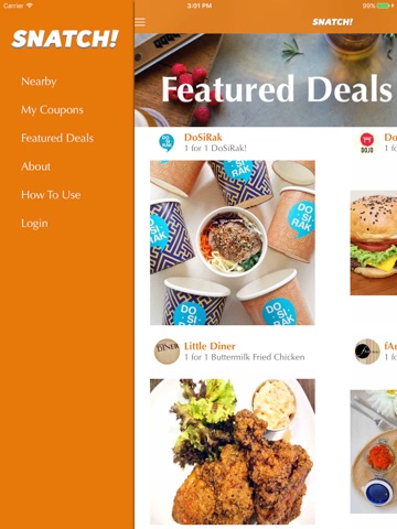 SNATCH! is a location based food and lifestyle discovery app brought to you by TheSmartLocal.com. SNATCH! curates the best food and lifestyle choices for users and helps them find the best and cost-worthy choices around them. Simply search for a cuisine or deal that you like, snatch it, and use it!