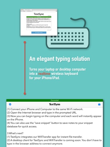 Each word you types on the computer will instantly appear on the iPhone.