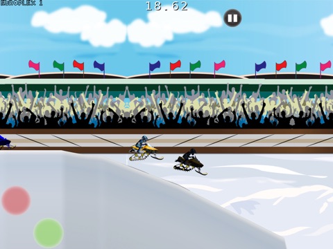 Race snocross snowmobiles on stadium race tracks!