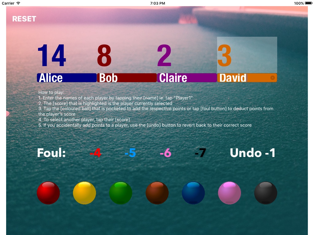 - Minimalist design with easy to read text and colour coordinated buttons for the balls