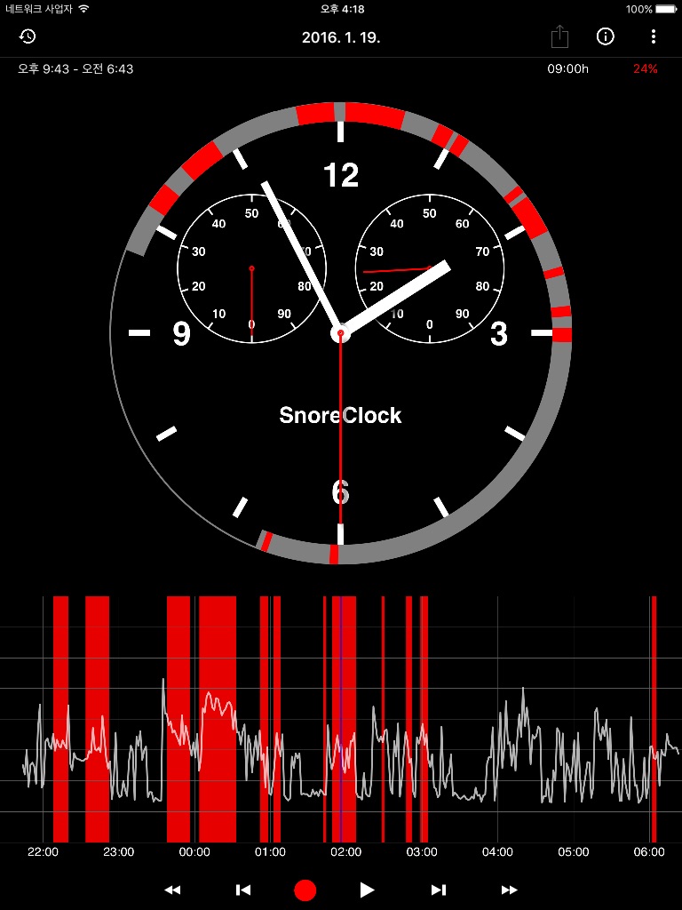 Eine clevere App. Zeichnet die Schlafgeräusche auf und markiert die Schnarchphasen, sodass man sie gezielt anhören kann. Das hohe Grundrauschen ist wohl der nötigen starken Lautstärkeanhebung geschuldet. Aber für die Analyse ist das ja unwichtig. Besonders schön finde ich, wie man bis ins Detail in die Aufnahme hineinzoomen kann. Oberfläche schön gestaltet, Bedienung weitgehend intuitiv. Lediglich den Nutzen des Vorwärtsbuttons habe ich noch nicht verstanden. Ich kann die App aber uneingeschränkt empfehlen.