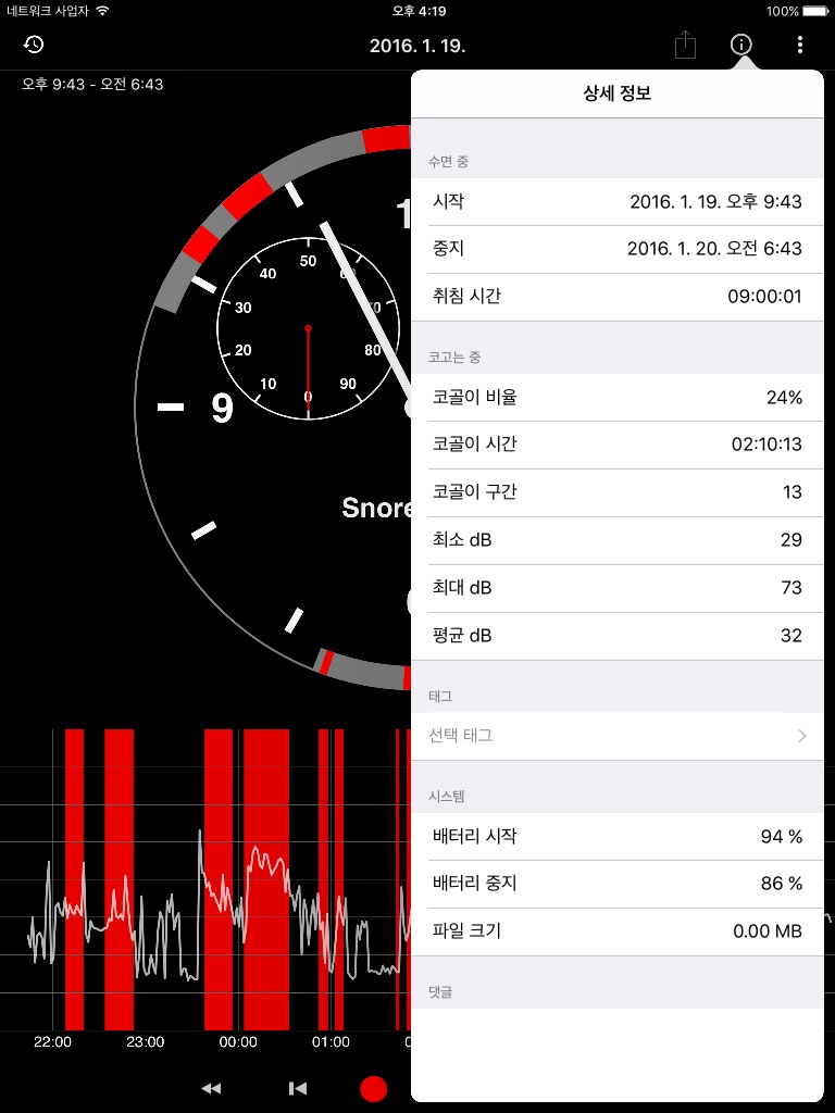Ist einfach zu bedienen und erkennt Schnarchen ziemlich gut. Genial finde ich, dass man in der Grafik ins Detail zoomen kann. Akku Verbrauch ist bei mir am iPad mini nur 5% pro Nacht. Das Ladegerät brauche ich deshalb gar nicht.