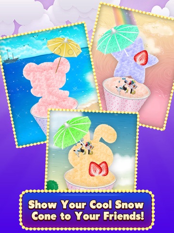 Snow cones are the perfect hot summer dessert, but often times theyre the same and boring. In Snow Cone Maker Salon, you can design cool, colorful snow cones that are unlike any youve ever seen! Use the machine to make the snow cone and then get ready to flavor and decorate it. With tons of flavors, can you pick just one? Create cute shapes with your snow cone, then design it with cool, colorful decorations! When youre done, take a picture of your beautiful creation and share it with your friends! Youll love having these cool desserts on hot summer days!