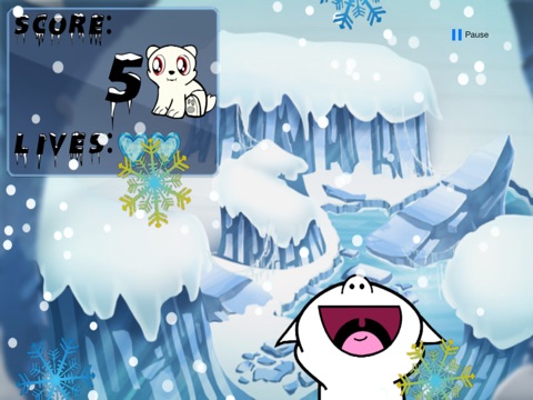 Help a cute polar bear catch snowflakes by tilting the phone left and right, catching as many snowflakes as you can while avoiding the yellow snowflakes and icicles. Every time the bear eats a blue snowflake you gain 5 points, which will determine how happy your bear is! Every time the bear eats a yellow snowflake or icicle you lose one life out of your three lives. The more points you receive, the faster the snowflakes fall.