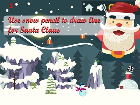 Do you want to help him ? In this game, you need to use a snow pencil to draw line for him to travel across mountains, get presents and come to kids house (marked by a red chimney). The road to town is very difficult. Mr Santa has to fly through mountains, volcano, caves and many other obstacles. You need to help him to come to town on time. He love elf kids, and he will come to give them presents. But he need help, are you willing to help him ?