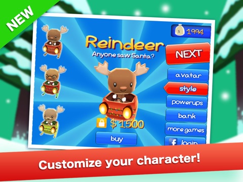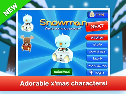 Surfing down the slopes colecting presents and gifts as you go. Great family fun game for the holidays and all winter long. Play as a snowman or a reindeer. Have a blast customizing your character! Multiple levels of obstacle avoiding fun.