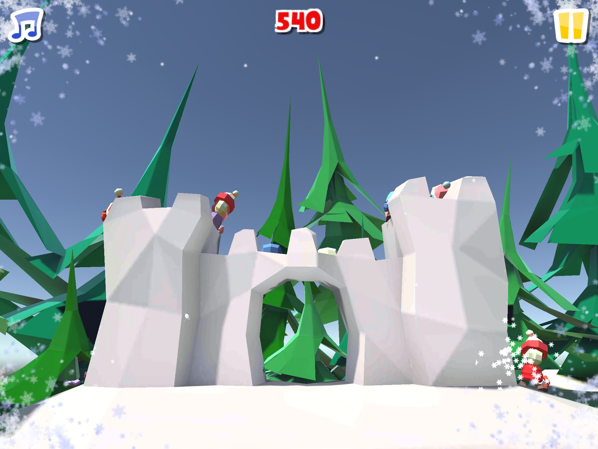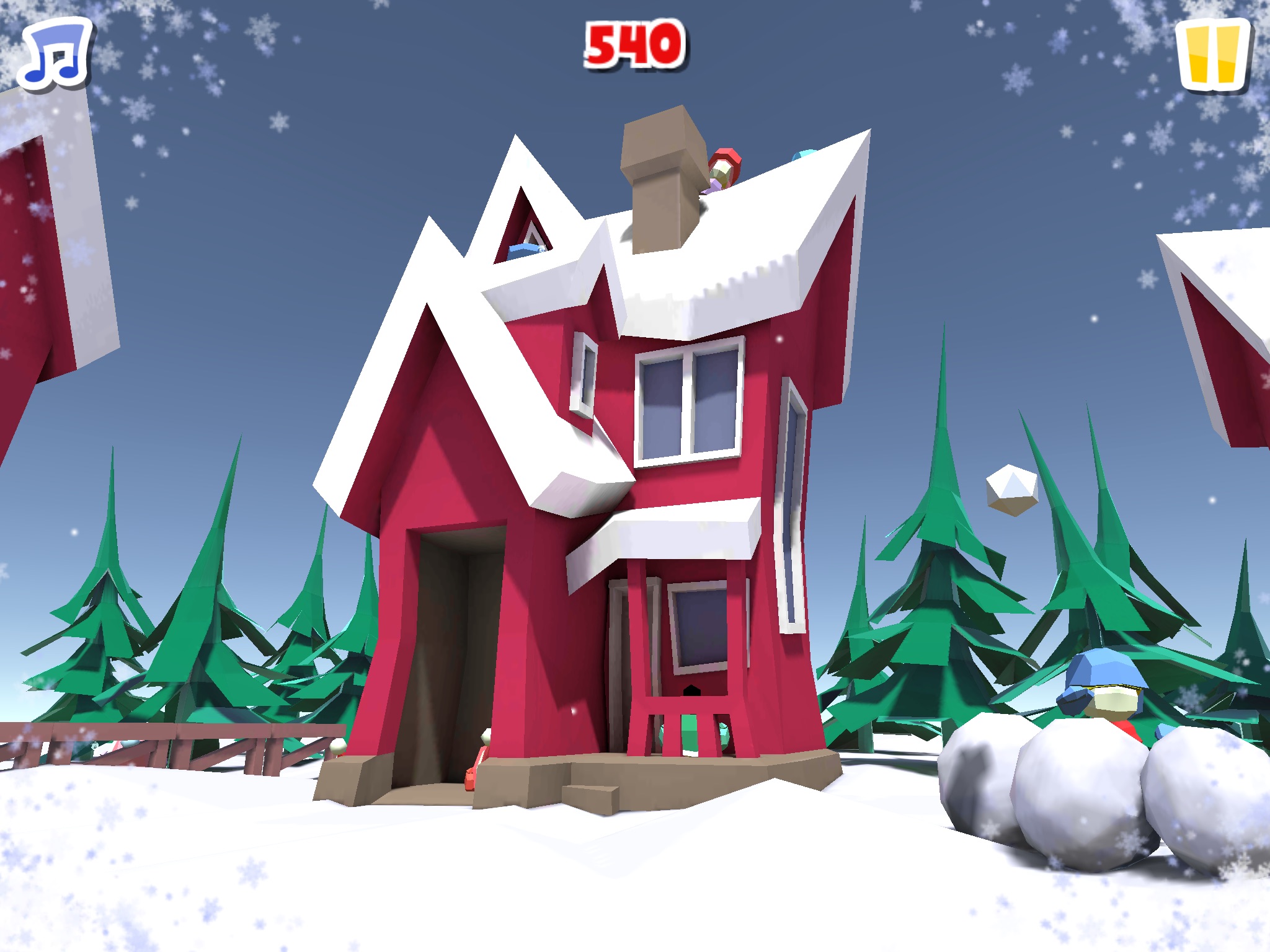 Fun and cheerful music makes the game even more interesting and turns the snowball fight into a exciting action.