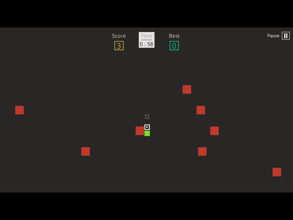 Puzzle game, makes you focus on moving a lighting white square, to collect green squares. but you have to avoid collision with red squares which are moving SO FAST cross the screen,