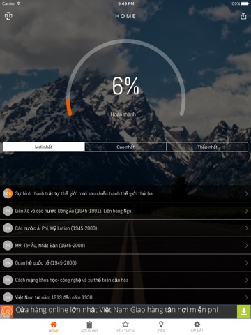 + Tình năng đánh giá kết quả rất hữu ích giúp các bạn biết được lượng kiến thức của các bạn đã hoàn thành trong môn lich sử