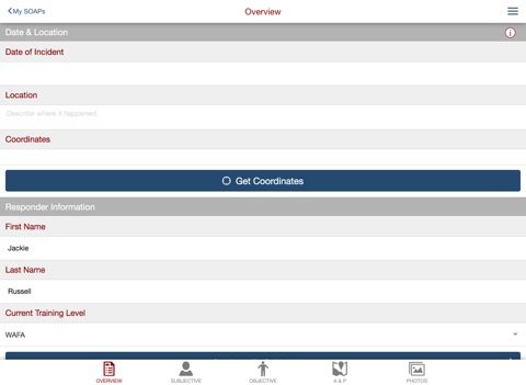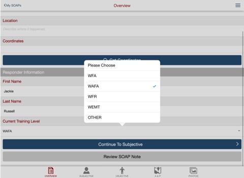Im a WEMT through NOLS and work in the South as an EMT. I take groups out on treks through many of the state parks. This app is excellent! It allows for simple & easy input of pt. information, it autosaves so you wont lose the information, allows for GPS coordinates and the ability to disburse the information to whoever you handing the pt. off to. Great app!