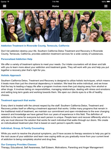 This App provides reliable drug addiction information and alcohol detox information from Southern California Detox in Temecula, California.