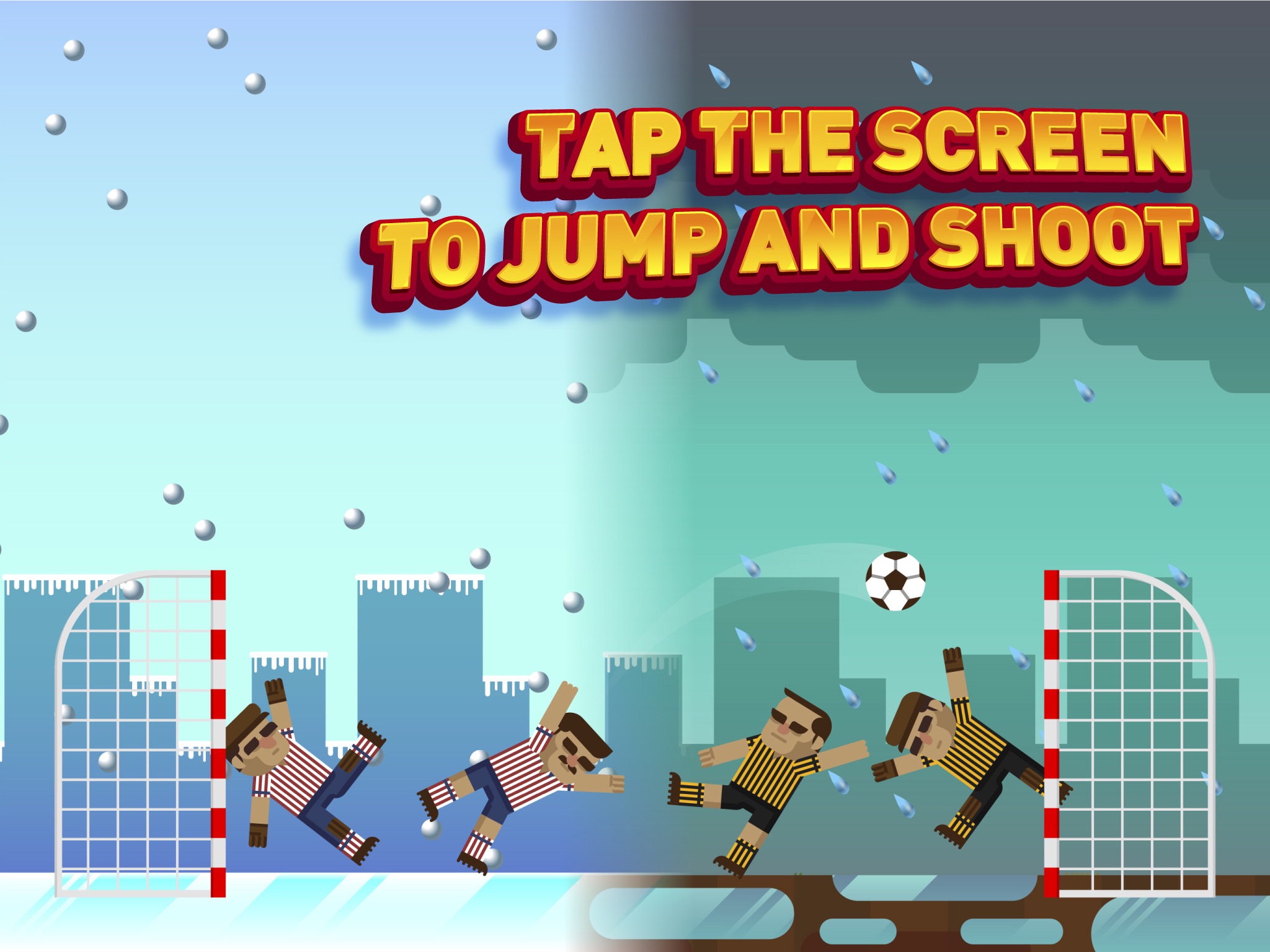 How to play: Tap the screen to jump and shoot at the same time. The first one to score five goals wins!