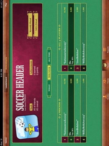 Soccer Header requires you to tilt your device and move the player left and right to keep the ball in the air. The ball bounces on the players head and goes back up in the air. If you miss the soccer ball and it drops to the ground, the game is over. Avoid the shoes or else the game will also end.