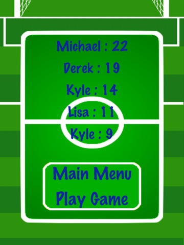 Try to get the soccer ball past the defenders and goalie, into the soccer net. Each time it gets through the soccer net, you get a point. If the ball misses the net or gets blocked by a defender or goalie, the game is over. Try to make as many in a row as you can, and get the top score.
