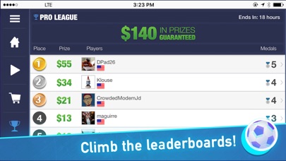 Score goals as you compete head to head against real opponents. Soccer King is an arcade game that is easy to learn and hard to master! Challenge other players from around the globe with 1-on-1 live matches or play at your own pace. Climb the leaderboards to take down the competition and win exclusive prizes!