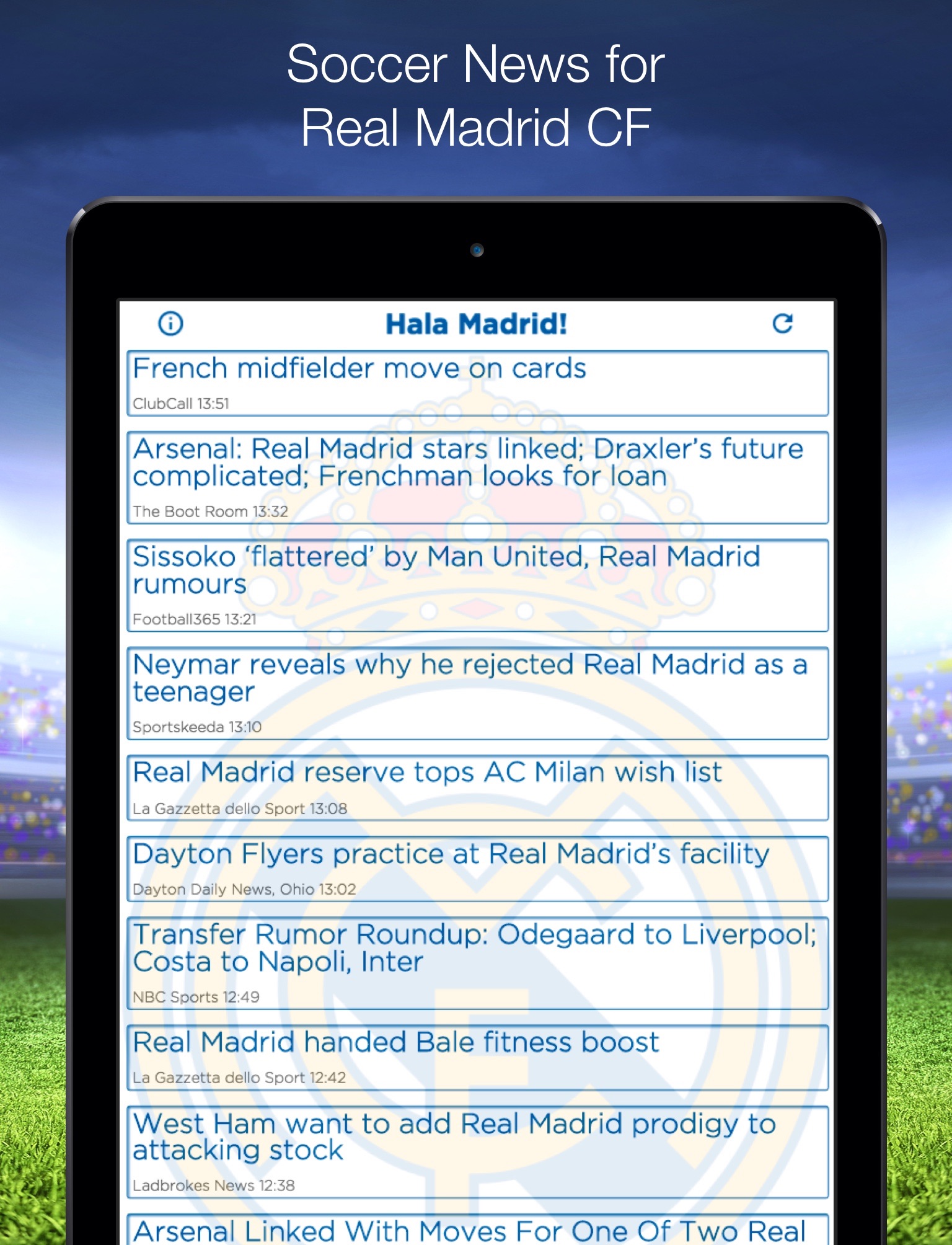 Soccer News created a real-time news application specifically, tailor-made, to all Real Madrid CF fans around the world. It doesnt matter if you are a light fan, an ultra fan or even a "ultra" fan - if you want to keep track on Real Madrid CF, you should try us out.