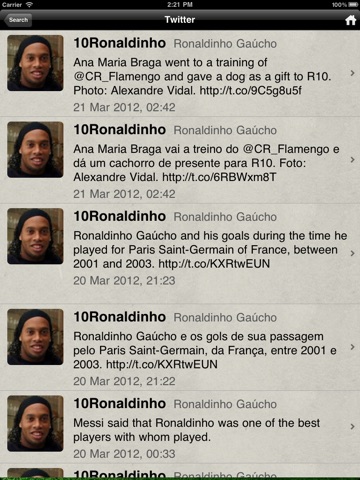 The app it useful to follow twitter account of famous football players. You can follow football players like, Kaka, Ronaldo, Ronaldinho, etc. Currently there are three major football association La Liga, English League & Serie A with their football clubs and players.