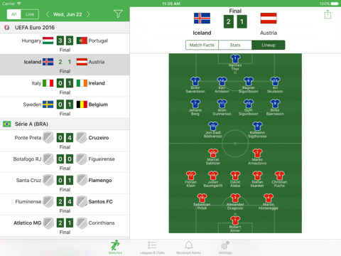 Real-time scores and alerts for more than 50 leagues and tournaments with more to come!
