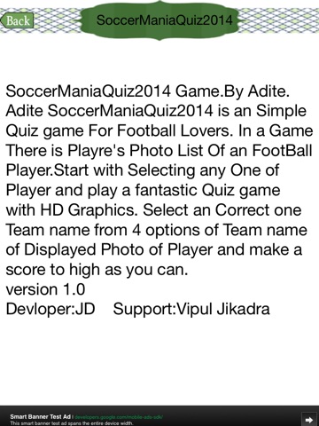 Introducing an SoccerManiaQuiz2014Game for Quiz Fans SoccerManiaQuiz2014 is an Simple Quiz game for this Monsoon Holidays.....