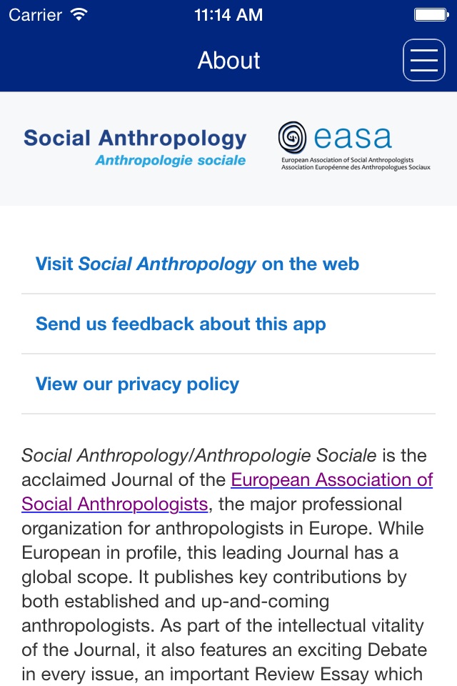 The new Social Anthropology/Anthropologie Sociale app brings you a stimulating, informative mixture of Articles, Debates, Book Reviews, and more. Enjoy an entirely new browsing and reading experience, and keep up to date with the most important developments in your field, wherever you are, whenever you want.