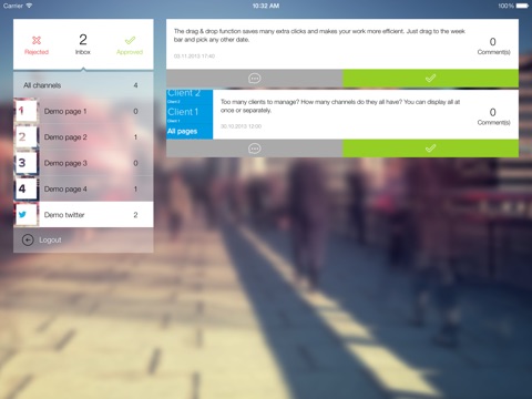 Currently Social Content Tool iOS application enables you to review content as you go. With SCT you approve, reject and comment on the content. You can give feedback to the content creators very quickly to keep the workflow smooth.