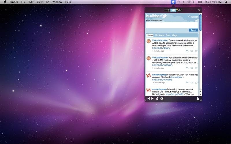 Très bien faite et sans horrible icone inutile dans le dock. Manque les notifications growl pour la 5ième étoile.
