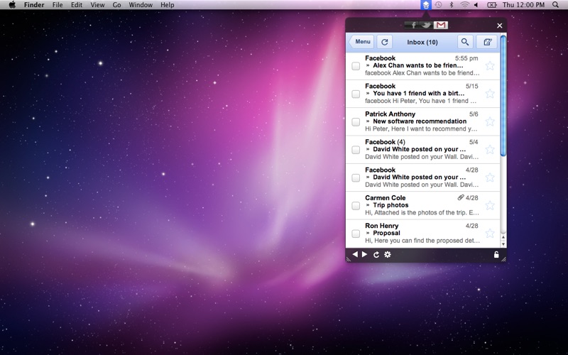 Très bien pour visualiser rapidement les derniers messages de nos contact. Mais par contre dès que je veux répondre que se soit Facebook ou Gmail, le logiciel bug. Pour facebook se serait bien comme la version pro davoir un affichage plus grand pour que se soit plus claire.