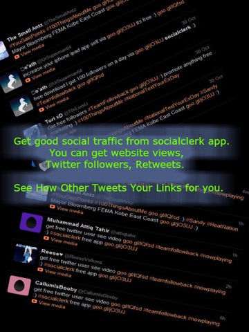 ◆Get good social traffic from socialclerk app. You can get website views, Twitter followers, Retweets.