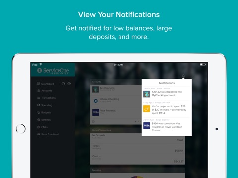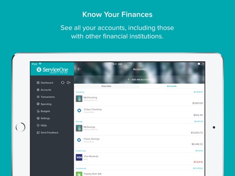 Service One Tracker will change the way you feel about managing your money. Powered by award-winning MoneyDesktop, Service One Tracker is built to make managing money easier and more convenient. Not only will you be able to see all your financial data in one place, you will be able to visualize that data in meaningful and engaging ways on your iPhone or iPad.