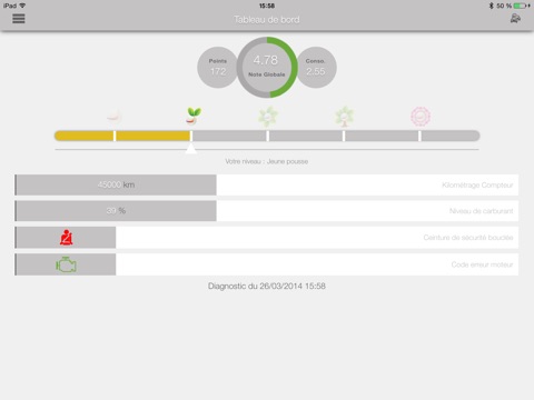 - Disposez d’un aperçu de votre conduite au quotidien avec des notes d’évaluation pour visualisez vos progrès d’un coup œil