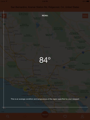 - Search for current weather by scrolling around the map and tapping on icons that represent current user reports.