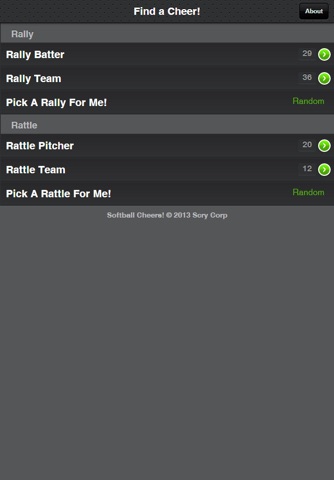 Great app. I love how simple it is. Plenty of cheers and theyre actually correct. You can tell somebody on your team actually coaches fast pitch! Thanks for a great app for our team. Get this: ALL the cheers we use were already in here AND we learned several new ones!