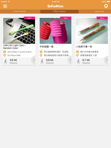 「SoFunNear」為您顯示附近提供禮遇的活動,以創新的活動參與方式,進行禮品兌換。您可透過完成活動內的FunTasks,如多項選擇、QR Code、Selfie照片、開放式答題等任務,並向主辦單位兌換禮遇(請參考相關活動條款及細則)。