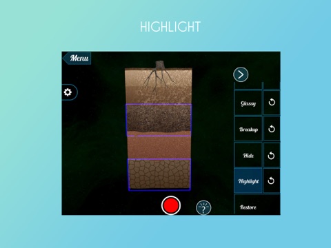 5) Analyse feature allows educators for show special focus on a specific part of the Soil Profile 3D. This helps is focus education.