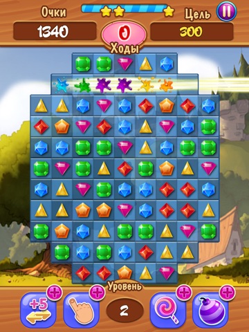 Игра с драгоценными камнями имеет более +100 увлекательных квестов с максимальным набором разных алмазиков на время или без времени, логические игры 5-и увлекательных миров со своими тайнами и загадками ждут вас в интересном приключении.
