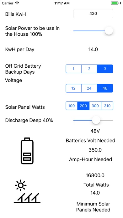 Solar Calculator: Battery Backup AH needed, Volts Needed, and Minimum Solar Panels Needed.