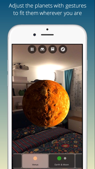 With solAR, you can explore the sun, all the planets and moons of our solar system in stunning high-resolution graphics, and place them in your real-world environment using augmented reality. Imagine being able to see Jupiter towering over your backyard or placing Saturns rings on a football field. With solAR, you can do just that. Our app uses the camera on your device to superimpose digital content onto the real world, creating an immersive and interactive experience that is like nothing youve ever seen before.