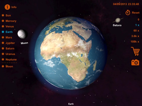 - Timer setting with speed up options to learn the spinning and orbiting basics of the solar system