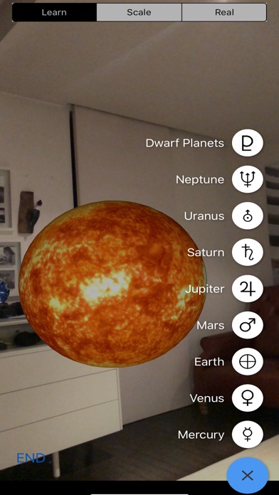 - See all planets, dwarf planets and most relevant moons in space in your room