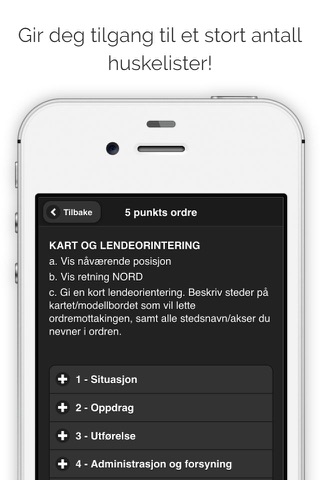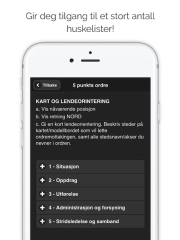 I tillegg inneholder applikasjonen aktuelle huskelister, driller, sanitetsprosedyrer, kart, posisjonstjenester og andre taktiske verktøy som gjør din grønne hverdag litt enklere.